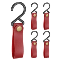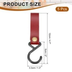 Made of PU leather and iron material, lightweight, waterproof, resistant to tears or wear, not easy to deform, and ensures long service life. It can hold items firmly, organize your house, maximize space utilization, and keep everyday things within your hand. Open the leather strap snap button, fasten it on the shelf, or loop it around a pole, and hang your item on the hook. Hang your tools during camping, such as cutlery, pots, pans, and other utensils. These hanger hooks are great for shirts, purses, belts, hats, jeans, towels, and robes.