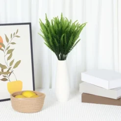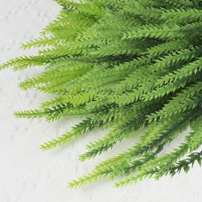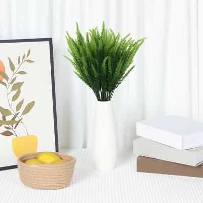 These artificial lavender flowers never wither and remain fresh forever, providing a romantic and artistic feel. Available in various sizes and colors, these delicate flowers with long slender green stems are perfect for weddings, bridal events, and banquets. They can be used to decorate porches, backyards, front yards, gardens, balconies, window sills, bedrooms, and more. Made of plastic material, these flowers look fresh all year round without falling or drying. Each lavender flower measures 13.4 inches and includes 10 bunches of artificial lavender. They are a great substitute for fresh or dried flowers, creating a romantic look for any event. Note that there may be some odor initially, which will dissipate in a ventilated environment. Easy to clean by simply wiping with a dry cloth.