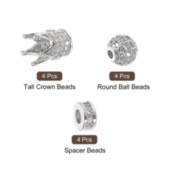 Rhinestone charm beads are crafted from copper and zircon, ensuring both strength and durability. The securely set rhinestones in the copper ball prevent any loss over time. These beads come in three distinct styles: Spacer Beads, Tall Crown Beads, and Round Ball Beads, each featuring sparkling rhinestones that create a dazzling effect. Their elegant design makes them perfect for enhancing any jewelry piece. Ideal as gifts, these charm beads are suitable for birthdays, holidays, or any special occasion, available in various colors and styles. Perfect for DIY projects, zircon pave rhinestone charm beads are easy to work with, making them an excellent addition to your crafting supplies, whether you’re a beginner or a seasoned professional.