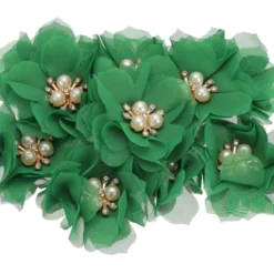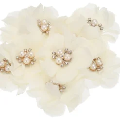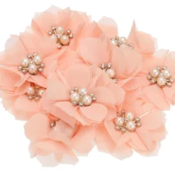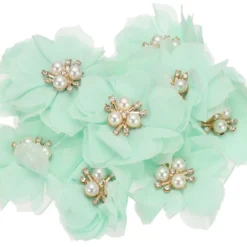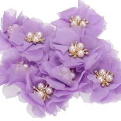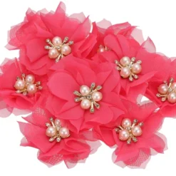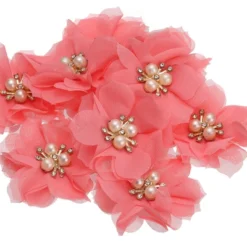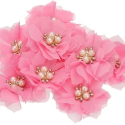 Chiffon flowers can be used to make wedding bouquets, bridesmaids’ wrist flowers, and can also be used to decorate clothes, dresses, invitations, gift boxes, headdresses, scrapbooks, or other DIY crafts to add a sense of refinement to the items. These fabric flowers are made of multiple layers of chiffon, overlapped and folded, and decorated with pearls and rhinestones. They are exquisitely crafted, soft and comfortable to the touch, and can remain bright and non-fading for a long time; the appearance is exquisite, which can greatly increase the visual appeal of the crafts. The method of use is simple, just use hot glue to stick or sew with a needle and thread to the items you want to decorate.