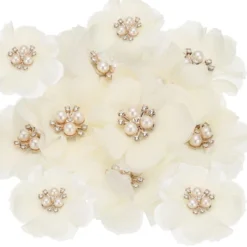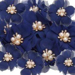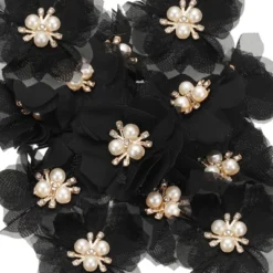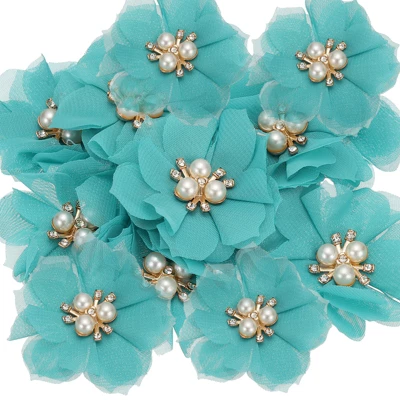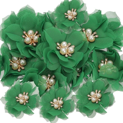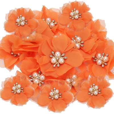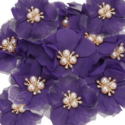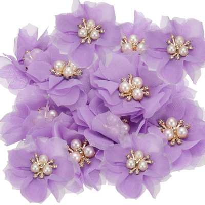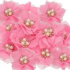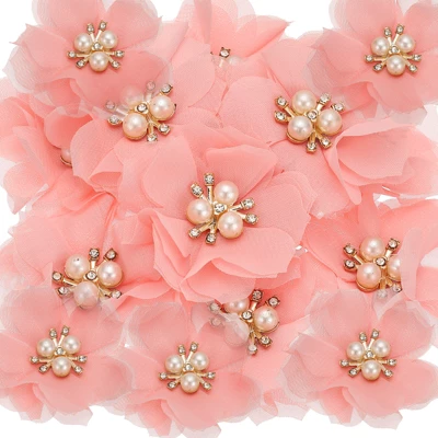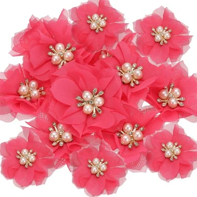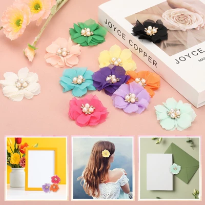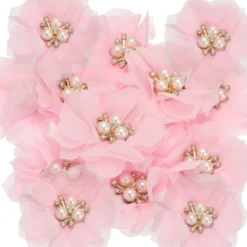 Chiffon flowers can be used to make wedding bouquets, bridesmaids’ wrist flowers, and can also be used to decorate clothes, dresses, invitations, gift boxes, headdresses, scrapbooks, or other DIY crafts to add a sense of refinement to the items. These fabric flowers are made of multiple layers of chiffon, overlapped and folded, and decorated with pearls and rhinestones. They are exquisitely crafted, soft and comfortable to the touch, and can remain bright and non-fading for a long time; the appearance is exquisite, which can greatly increase the visual appeal of the crafts. The method of use is simple, just use hot glue to stick or sew with a needle and thread to the items you want to decorate.