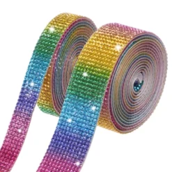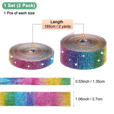 Unique Bargains Rhinestone Spray Rainbow Flexible Durable Ribbon 0.5/1.1 Inch X 2 Yards 2 Rolls