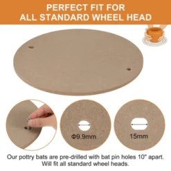This pottery bat is made of wood fiber material, which is easy to clean and has good water absorption capacity. This type of pottery bat is known for its durability and stability, providing reliable support for clay during the shaping process. Additionally, it features resistance to warping and cracking, ensuring that it can withstand frequent use. Bats for pottery wheels are placed on the turntable of the machine, then the finished pottery is directly removed to dry, effectively protecting work from being damaged. The bat for pottery wheel is a perfect addition for handmade ceramics and pottery handicrafts, applicable to increase the size of the turntable and dry the artwork. It is also suitable to act as a sculpture base, wood carving base, and more. This Bat for Pottery Wheel is designed specifically for ceramic artists, ensuring an efficient and enjoyable pottery-making process.