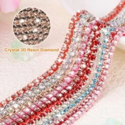 This craft rhinestone chain can be used as a beautiful decoration, like waves under the light, adding a touch of exquisite and unique atmosphere to your decoration. No matter where you go, you are elegant and stand out. The crystal rhinestone roll is made of an iron buckle and resin rhinestone material, which is not easy to deform or fade under general circumstances, and the diamonds are not easy to fall off. It is easy to stick on any smooth surface, and it is lightweight and easy to carry, and store. If you want to make it into a patch, you can use adhesive to stick it to fabric or other materials, or you can sew it with transparent or matching thread. Imagination is endless, do whatever you want. The shiny rhinestone ribbon is suitable for adding a touch of sparkle to many holiday decorations, wedding decorations, clothing, cake decorations, candles, vases, clothes, and plastic items. It can also be used as a delicate decoration for home decoration, accessories, etc.