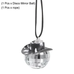 This disco mirror ball is made of a cowboy hat and a disco mirror ball, with a unique and interesting shape, adding a different decoration to your car. Mirror design, when the sun shines on the surface, the surface will sparkle, but it will not affect the sight, allowing you to maintain a good atmosphere when driving the car. This disco mirror ball is very suitable for decorating cars, offices or keys and backpacks. It can also be used as a holiday decoration, such as a Christmas tree decoration. You can give it as a gift to your friends or family to make your relationship closer.