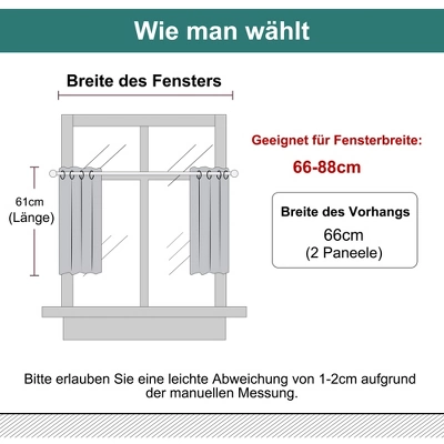 The blackout curtains are made of quality 100% polyester fiber, which is not only smooth and durable but also wrinkle-resistant and lightweight. Room darkening curtains with simple solid designs look elegant, and suitable for a variety of ornament styles and most rooms, such as the kitchen, basement, bedroom, and bathroom. Thick window curtains can perfectly block the glare of the sun, and isolate heat or cold, so that your room has a softer light and a more balanced temperature, providing you with a more comfortable atmosphere. The 1.6”( 4cm ) inner diameter metal ring is large enough for most curtain rods on the market, so these curtains can fit well with most rods. Available Sizes: 52”W x 15”L(132 x 38cm) 26” W x 14”L (66 x 61cm) 26” W x 30” L(66 x 76cm) 26” W x 35” L(66 x 91cm) 26” W x 45” L(66 x 114cm). Notes: 1. Colors in the screen may not accurately reflect the true color due to individual computer monitor differences. 2. Due to the different measurement ways or tools, there may exist slight deviation (ranging from 1-3cm), hope that you don’t mind. 3. Please confirm carefully the size you need before buying.