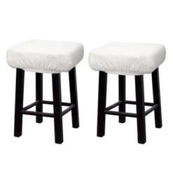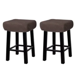 These stool covers are made of polyester with a luxurious pattern, ensuring they are soft and thick while being anti-wrinkle. They are designed to protect bar stools against dust, water smudges, and scratches, covering broken areas to prevent further damage. Easy to clean, these covers can be hand-washed or machine-washed with cold water, and should not be bleached or ironed. They are suitable for various situations, including dining rooms, kitchens, patios, gardens, bars, clubs, bookstores, or restaurants.