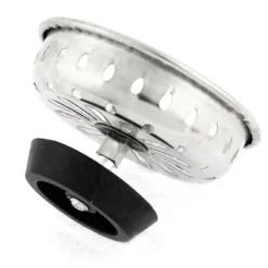 This stainless steel strainer features a perforated hole mesh design with a plastic stopper, making it highly effective in preventing sink clogs while allowing water to flow through. It is widely used in kitchen and bathroom sink drains to prevent blockage in the plumbing system. The strainer is lightweight and easy to install, fitting mounting hole diameters of 75mm. It is a practical tool for maintaining cleanliness and efficiency in your home sinks.