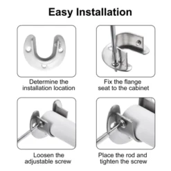 These stainless steel closet rod brackets are designed to provide reliable support for your wardrobe or curtain rods. Constructed from 204 stainless steel, they offer excellent hardness, load-bearing capacity, and corrosion resistance, ensuring long-lasting durability and a rust-proof finish. The U-shaped design allows for easy installation and quick removal of rods, accommodating a maximum diameter of 19mm (3/4 inch). These brackets are versatile and can be used with various types of pipes, such as stainless steel, solid wood, aluminum alloy, and PVC. Equipped with adjustable screws, they are easy to install by simply securing the screws in the bracket’s base holes. This ensures stability and prevents the rod from shaking or rotating. Ideal for use in closet storage, wardrobes, balcony drying areas, bathroom curtains, kitchen storage, and other storage spaces, these brackets offer a practical and economical solution for organizing your space.