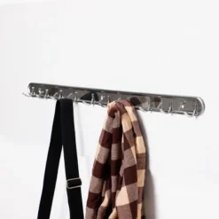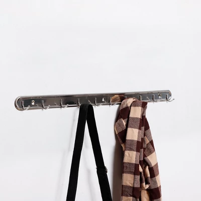 Stainless steel wall hanger with 10 hooks is for hanging towels in the bathroom. You can also use it to hang neckties, bags, scarves, lightweight clothes, shower caps, etc. Help to keep things in order and save space. The wall mount hook rack is perfect for anyone who needs more hanging space.