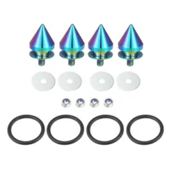 Quick-release bumper fastener used to fix car bumpers to avoid falling off again, also decorate your car. Made of sturdy aluminum alloy and quality rubber, durable and not easy to crack. Universal suit for most vehicles front rear bumpers. Installation Steps: Remove the inner fender clips along the side to get access to the back of the bumper easier. Mark the hole position where you will install then drill the holes. Install the aluminum fastener and put the rubber band in the normal way or cross. Tighten the back fender nuts, and finished. Material: Aluminum Alloy, Rubber; Bumper Quick Release Tabs Size: 38.5x21mm / 1.52″x0.83″(H*D); Nuts Size: 10x5mm / 0.39″x0.20″(L*D); Washers Size: 25mm / 0.98″(D); Washers Inner Diameter Size: 6.5mm / 0.26″(D); Customized Nitrile Rubber O-Rings Size: 55mm / 2.17″(D); Package Included: 4 x Silver Tone Quick Release Tabs; 4 x Nuts; 4 x Washers; 4 x O-Rings.