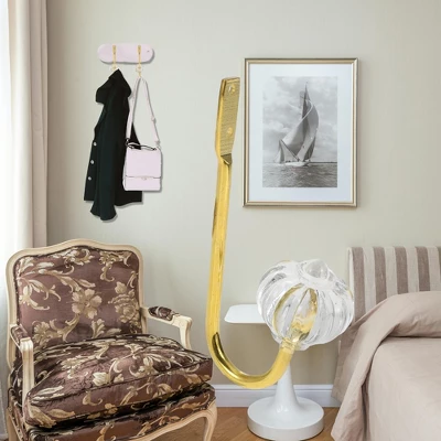 Crafted from robust iron and acrylic, these wall coat hooks boasts a blend of strength and sophistication. The sturdy construction ensures reliability over time while imparting a modern and refined look to your decor.Offering a compact and contemporary design, these hooks are the good solution for optimizing storage in tight spaces. They provide a practical way to keep coats, hats, bags, and accessories neatly arranged without occupying precious floor areas.With included mounting hardware, setting up these hooks is a breeze. Simply attach them to any wall or door surface effortlessly, creating an organized and accessible spot for hanging garments and essentials with minimal effort.Suited for various settings like entryways, bedrooms, bathrooms, or closets, these hooks cater to diverse storage needs. From holding outerwear and keys to towels and decorative accents, they offer a versatile storage solution that enhances both functionality and style.Each hook is engineered to support items securely, ensuring dependable performance under different loads. Whether for light everyday use or heavier storage demands, these wall coat hooks deliver practicality and efficiency without compromising on aesthetic appeal.