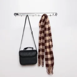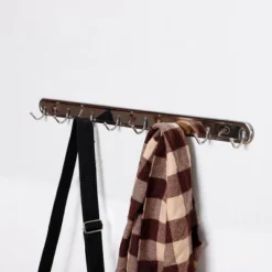 Silver-tone metal wall hanger with 8 hooks. Can be used in your living room, bedroom, or bathroom for hanging towels, coat, hat, handbag, etc. It features two holes for easy installation, mounting screws are included here. Help to keep things in order and save space. Notes: Due to the light and screen setting difference, the color of the item may be slightly different from the pictures. Variability of 2-3 cm is possible due to the measurement process.