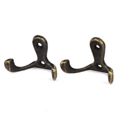 The double hooks design offers versatile hanging options for towels, shower caps, robes, clothes, and more. Made from durable metal material, this hook is a reliable accessory for use in bathrooms, bedrooms, or kitchens. The package includes install screws, making it easy to set up. With its vintage bronze tone, it adds a touch of elegance to any space. The compact size ensures it fits well in various locations without taking up too much space.