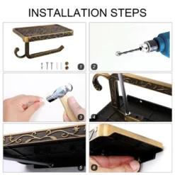 Our toilet paper holder has a classic style with a simple and attractive finish. Made of durable aluminum alloy, this paper holder will provide years of quality use. It provides a handy shelf for storing phones, glasses, hand cleaners, or other accessories. It is easy to install with the included hardware and is mounted securely. This toilet paper holder fits conveniently install next to the toilet or washbasin. Morden look design that matches all kinds of home styles. Great for bathroom, kitchen, washroom, restroom, and so on.