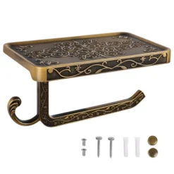 Our toilet paper holder has a classic style with a simple and attractive finish. Made of durable aluminum alloy, this paper holder will provide years of quality use. It provides a handy shelf for storing phones, glasses, hand cleaners, or other accessories. It is easy to install with the included hardware and is mounted securely. This toilet paper holder fits conveniently install next to the toilet or washbasin. Morden look design that matches all kinds of home styles. Great for bathroom, kitchen, washroom, restroom, and so on.