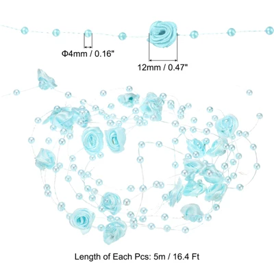 This pearl string bead garland is perfect for creating a beautiful background or crafting unique DIY projects. Made from durable plastic and resin, the garland features round pearls with a lustrous surface and roses that have a strong three-dimensional appearance. The garland is versatile and can be used for decorating weddings, parties, Christmas, costumes, bouquets, and jewelry accessories. It can also be used for tables, vases, and other items. The length can be adjusted as needed without the pearls and flowers falling off.
