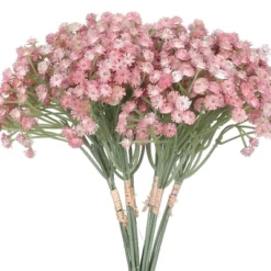 These artificial flowers are designed to remain fresh and vibrant without wilting, providing a romantic and artistic touch to any setting. The delicate flowers, featuring long slender green stems, are ideal for weddings, bridal events, and banquets. They require no maintenance or watering, ensuring they stay beautiful for years. The flowers are made of plastic, with firm and bendable stems, making them perfect for crafting and DIY projects. Each flower head and branch can be easily installed or reattached if they become dislodged during transport. These flowers are not suitable for prolonged exposure to direct sunlight or immersion in water, as this may cause fading.