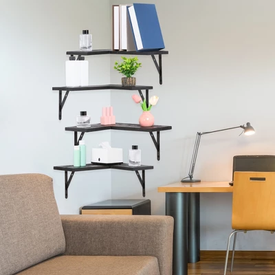 - Wall-mounted room decor with 4 sets of good quality wooden bathroom shelves