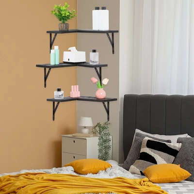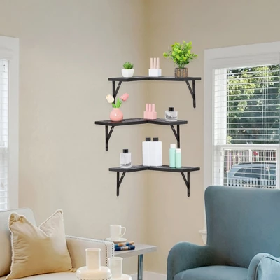 These floating shelves are crafted from wood, which is resistant to warping and cracking. The strong wood ensures sturdy support for your items while the wood texture can add a touch of character to any room. The versatile wood shelves can blend seamlessly into many spaces including the living room, kitchen, home office, bathroom, bedroom and so on. One set can be split up and installed in different areas, giving you the flexibility to plan shelf organization to work for your unique space. Easily mount the bathroom shelves on drywall, and concrete walls using the included mounting hardware just in a few minutes by yourself.