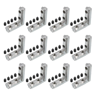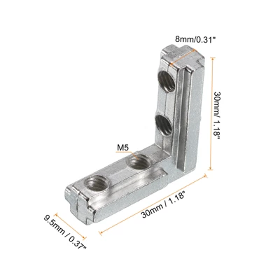 Made of zinc alloy with a nickel-plated surface, this aluminum corner bracket is of good rust resistance, high hardness, and long service life. The L shape hidden corner bracket is used for setting up a right angle connection of the two aluminum profiles, insert the two ends of the L bracket into the groove of the profile, and tighten screws to fix the two profiles. Built-in connection design with beautiful and simple features. They are for a series of aluminum profiles with 0.31in slots. Widely used for building industrial aluminum frame structures, 3D printers, CNC routers, CNC laser cutters, robotics projects, woodworking machinery, fish tanks, etc. Easy to install with set screws and wrench. Please allow 0.04-0.08in deviation due to manual measurement. Check the size you need before purchasing.